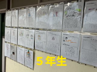 ![]() 5年生は、総合の学習で松浜の鮭について調べています。この日は、調べて分かったことなどを、新聞にまとめる作業をしました。わかったことを文章にまとめたり、写真を入れたりすると、本物の新聞のような見栄えのよいものが出来上がりました。 |