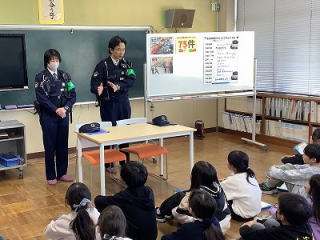 ![]() 3年生は社会科で「事故や事件からまちを守る」の学習をしています。今日は警察官の方々に来ていただき、交通事故の状況や、警察官の仕事の内容について詳しく教えていただきました。 |