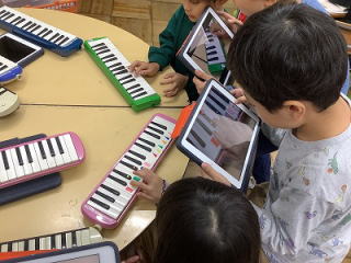 5年生は、音楽で「小さな約束」という曲をリコーダーで演奏する練習を行っています。グループごとに、音を合わせながら練習をしていました。全員で音を合わせるのが楽しみです。