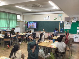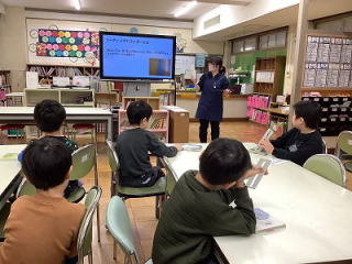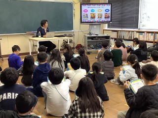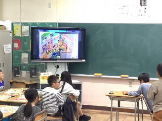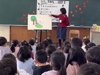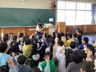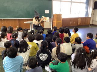 先週から読書旬間が始まっていますが、今週の月、木、金と「おはなしの泉」の方々に、各学級で『おはなしの会』をしていただきます。今日は1年生と4年生が行いました。1年生の会では、パペットやパネルシアターによるお話もあり、子どもたちは引き込まれていました。