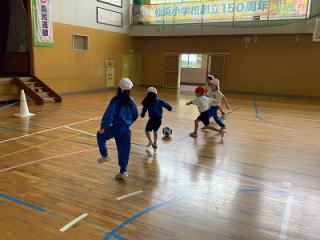 6年生は体育でソフトバレーボールの学習をしています。今日はレシーブの練習をしていました。大きくて柔らかいボールを使っていますが、コントロールよくパスをするのはなかなか難しいようです。