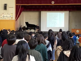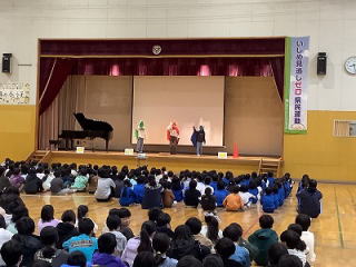 体育館で音楽鑑賞会を行いました。楽団の皆さんの迫力ある演奏に、子どもたちは釘付けとなっていました。馴染みの曲が演奏されたときは、みんなで手拍子をしながら、楽しそうに聴いていました。