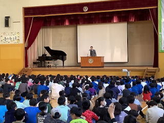5月の全校朝会は、スクールサポーターの人たちの紹介を行いました。子どもたちの安全を守ってくれるサポーターの皆さん、今年度もよろしくお願いします。