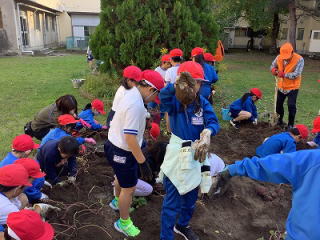 1年生は、晴れた日にチューリップの球根を植えました。アサガオを育てた植木鉢を使って行いました。春にはきれいな花が咲くことでしょう。