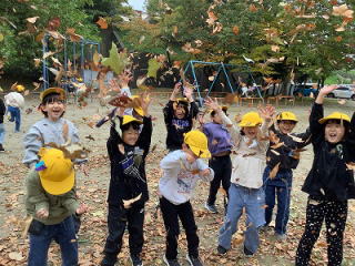 天気がいい日は、日中は暖かいです。そんな小春日和の休み時間、1年生は落ち葉のシャワーで秋を満喫したり、元気に遊んだりしています。