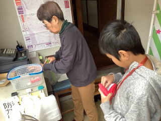2年生は、生活科の学習で、秋のまちたんけんに出かけました。今回は、店の人にインタビューをすることがメインでした。お店の工夫など聞いてわかったことを、学校でまとめます。