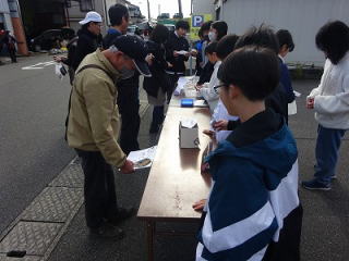 6年生は、総合の学習で「松浜地区活性化プロジェクト」を行っています。この日は、松浜市でクッキー販売を行いました。このクッキーは、子どもたちが今まで調べてきた松浜の宝をもとにデザインしました。販売後は何と数分で売り切れたそうです。次回は17日に販売する予定です。